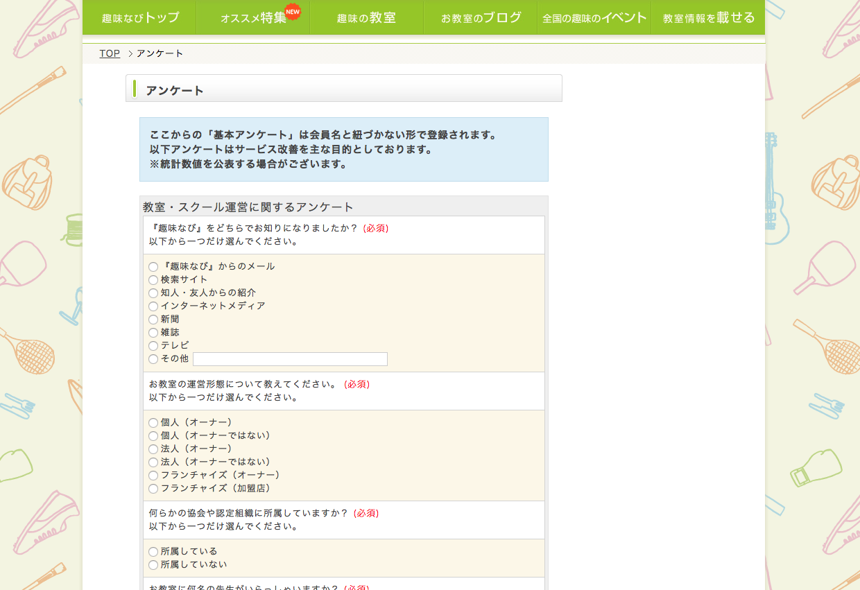 もし現在、まだ何も教室やスクールをやったことが無い人でも、適当に該当する項目を選択しておけばOKです。(あくまでアンケートですので)