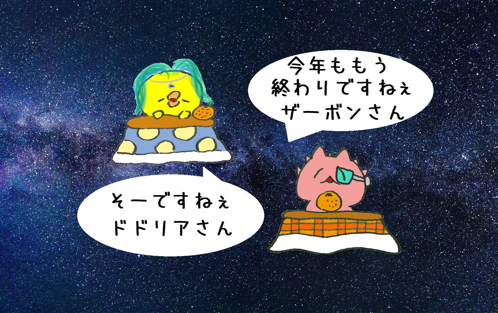 暖かいこたつに入って、
