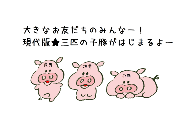大きなお友だちの よいこのみんなー! 三匹の子豚のお話が はーじまーるよー♪ 長男の豚、次男の豚、三男の豚、 三匹のお話だよー 【この物語を読む前に】 &nbs