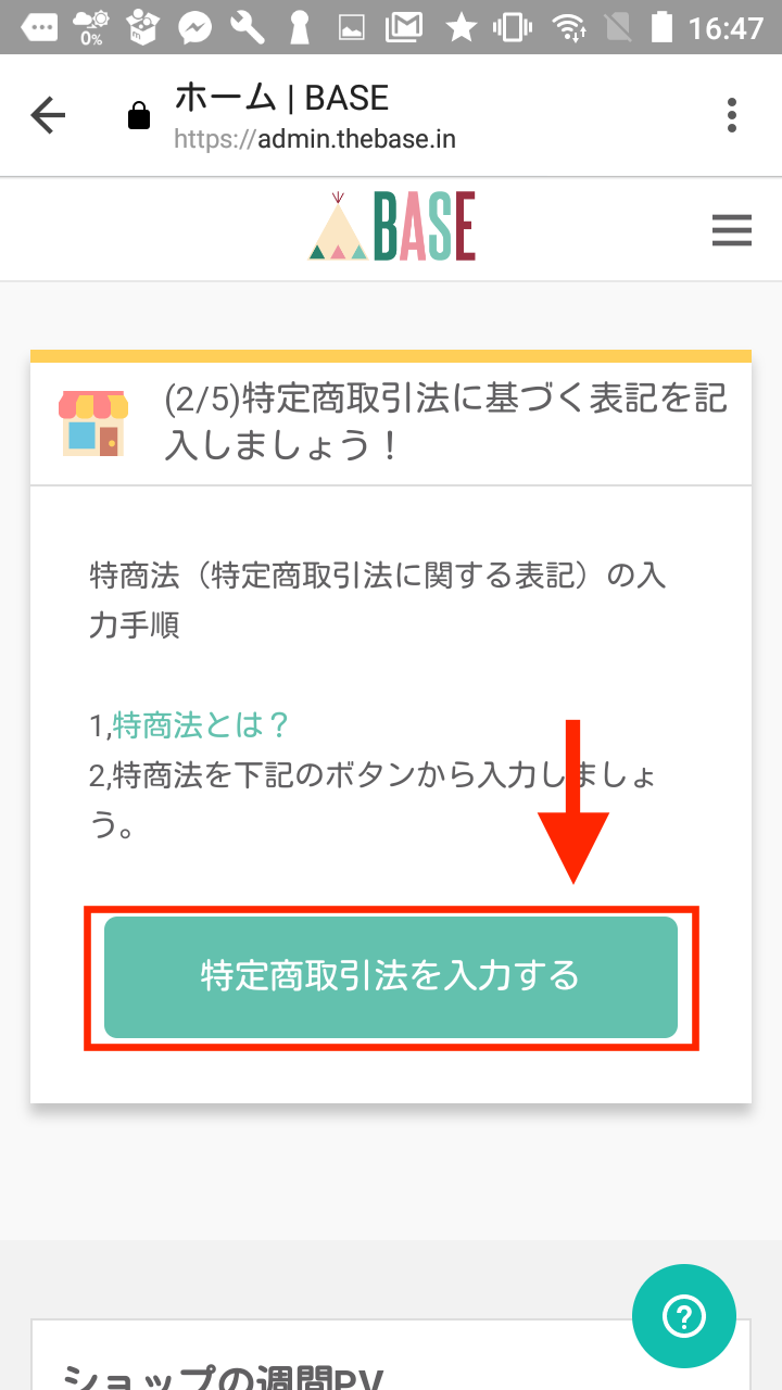 11. 続いて「特定商取引法を入力する」をクリックします。