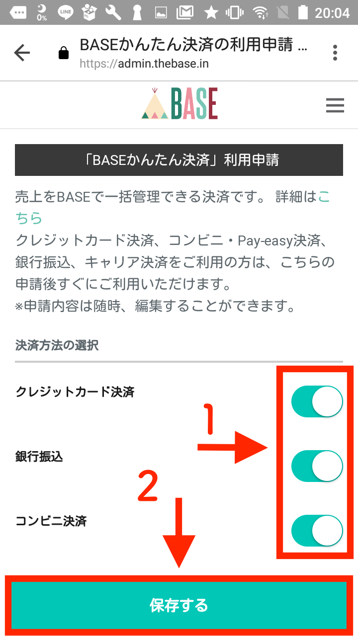 17. 利用したい決済方法にチェックを入れ、「保存する」をクリックします。