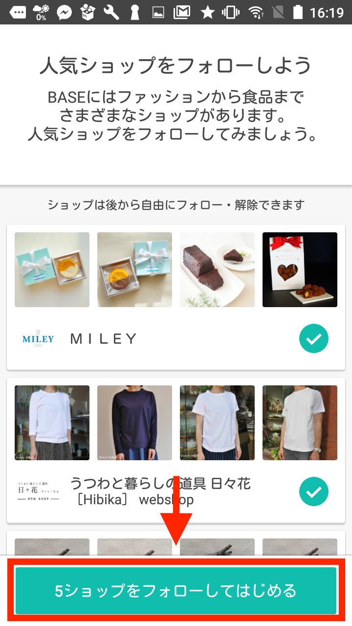 2. 「5ショップをフォローしてはじめる」をクリックします。