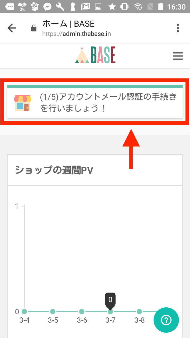 8.次の画面へ移動したら「(1/5)アカウントメール認証の手続きを行いましょう!」をクリックします。