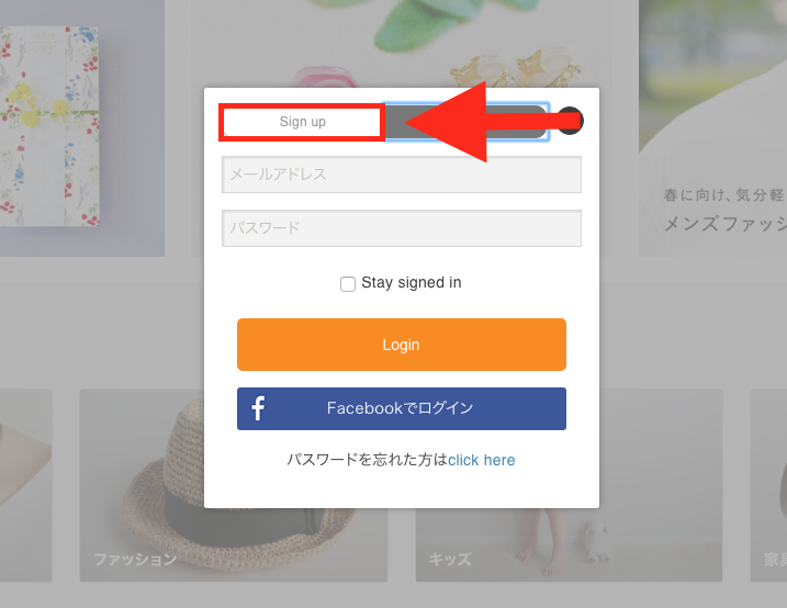 3. 「Sign up」(登録)のページ内に、登録する「メールアドレス」と「パスワード」を入力し、