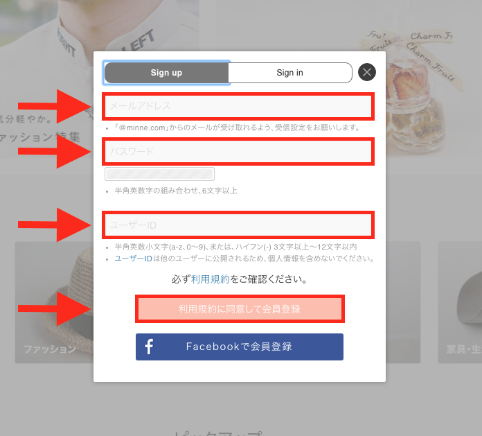 このページでは、ミンネminneへの登録手順と、作家登録手順の2つを順を追って解説いたします。