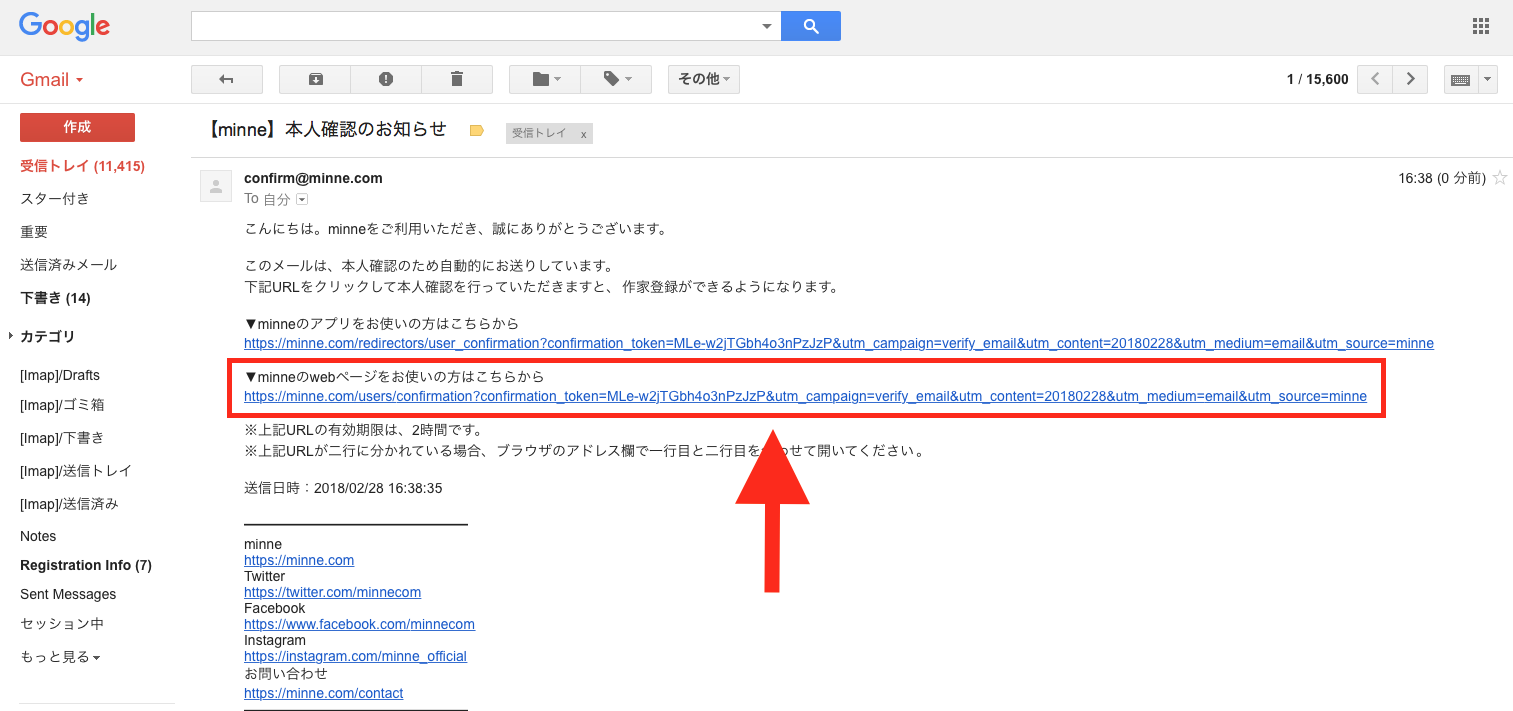 8. 登録したメールアドレスに、ミンネからメールが届きますので、