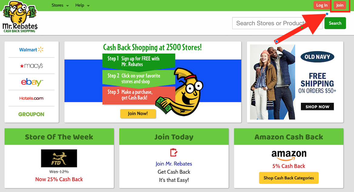 1. まずはじめにMr.Rebatesのサイトを開きます。