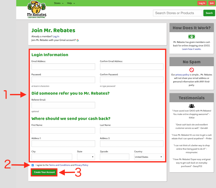 3. 「Join Mr.Rebates」の画面では、下記の項目のみ入力すればOKです。