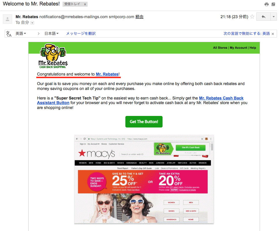 (おめでとうございます。ミスターリベーツへようこそ!)