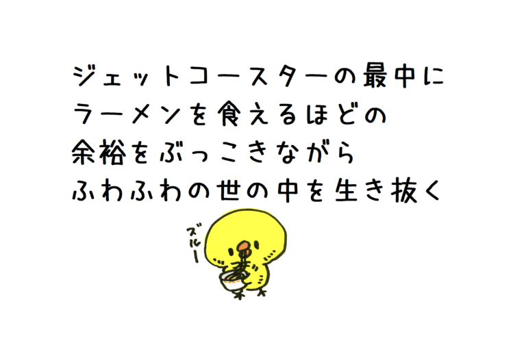 これから先、 未来がどうなろうと、 世界がどう変わろうと、 目の前のことにだけ集中して生きていく ジェットコースターのような乱高下が起ころうと、 砂嵐のような大吹雪のなかであろうと、 目の