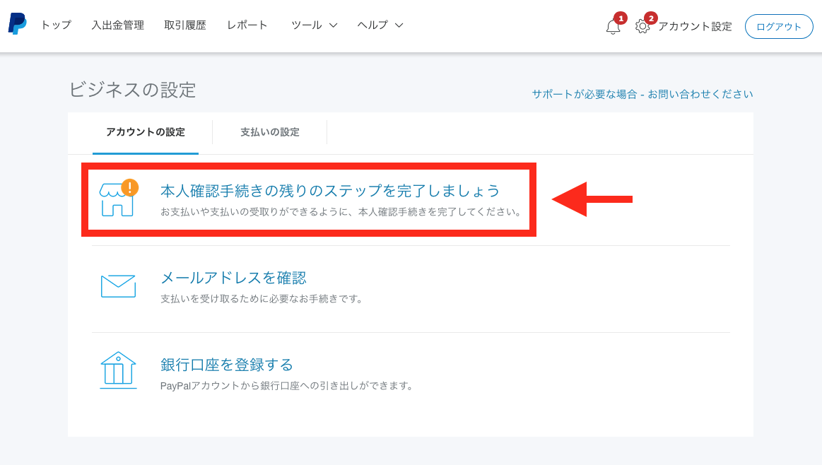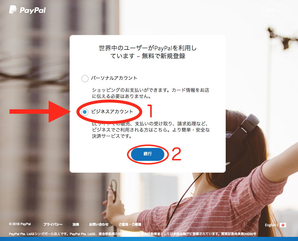 ペイパルのビジネス用アカウントを取得しておくと良いでしょう。