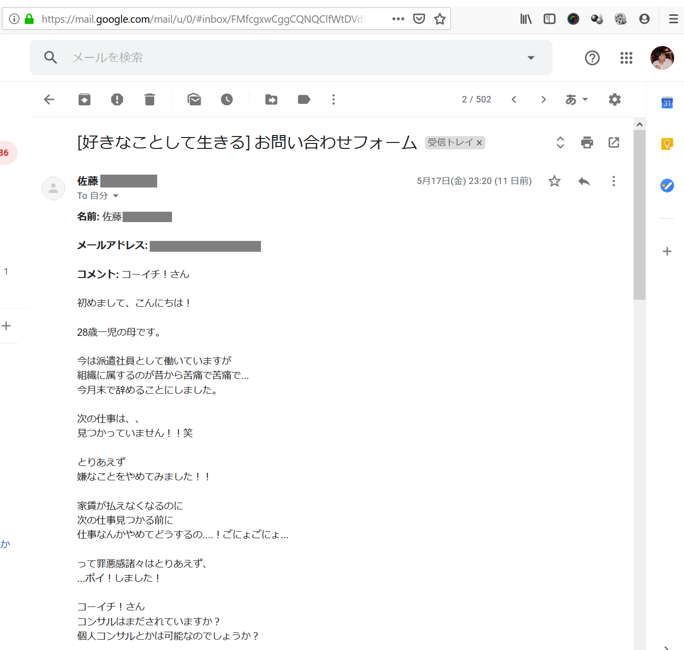 (ご本人の許可を得ましたが、下のお名前の方はご希望により伏せてあります)