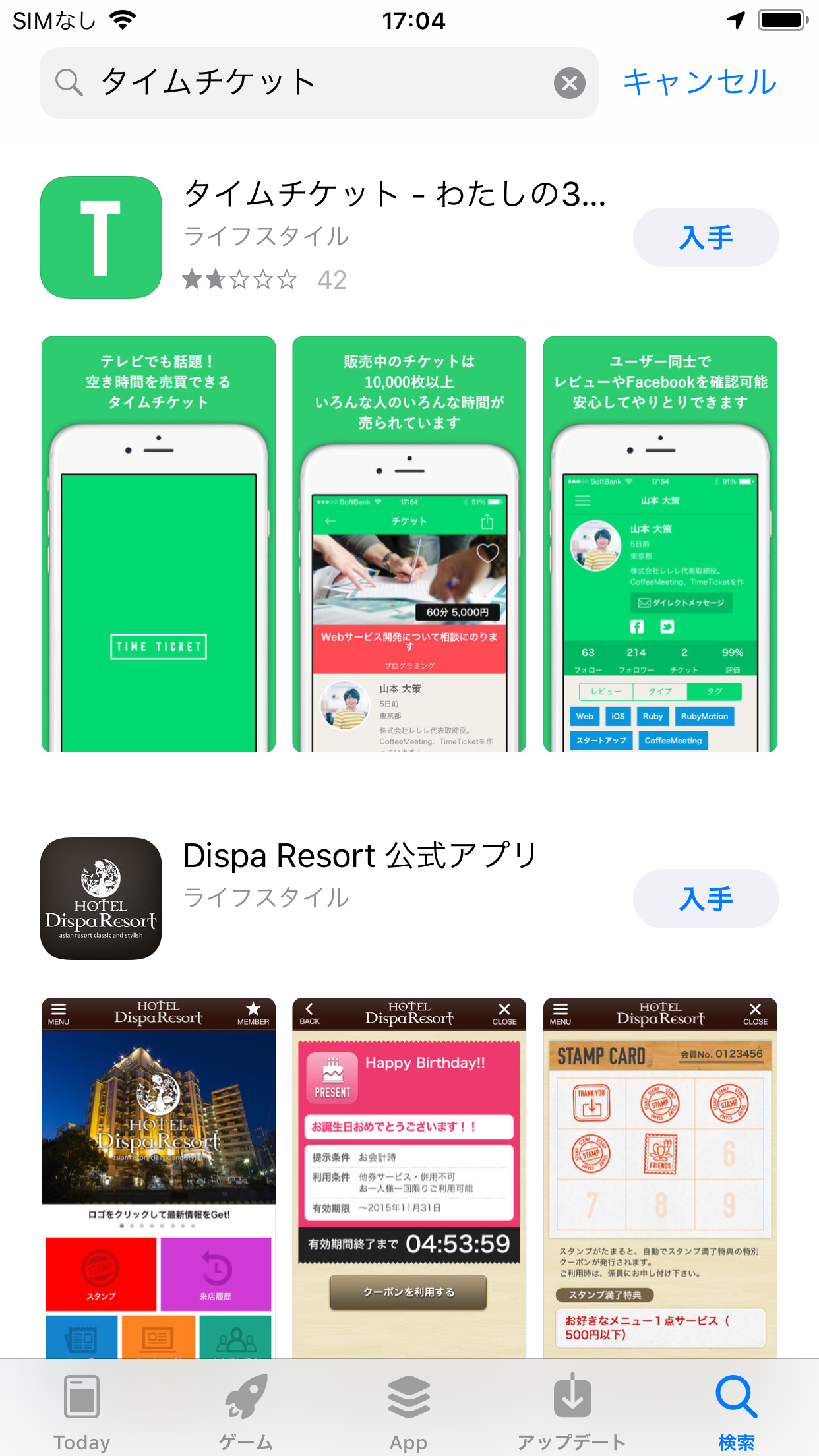 アップルストアまたは、グーグルプレイストアの検索欄で「タイムチケット」と入力すると、アプリが出てきます。