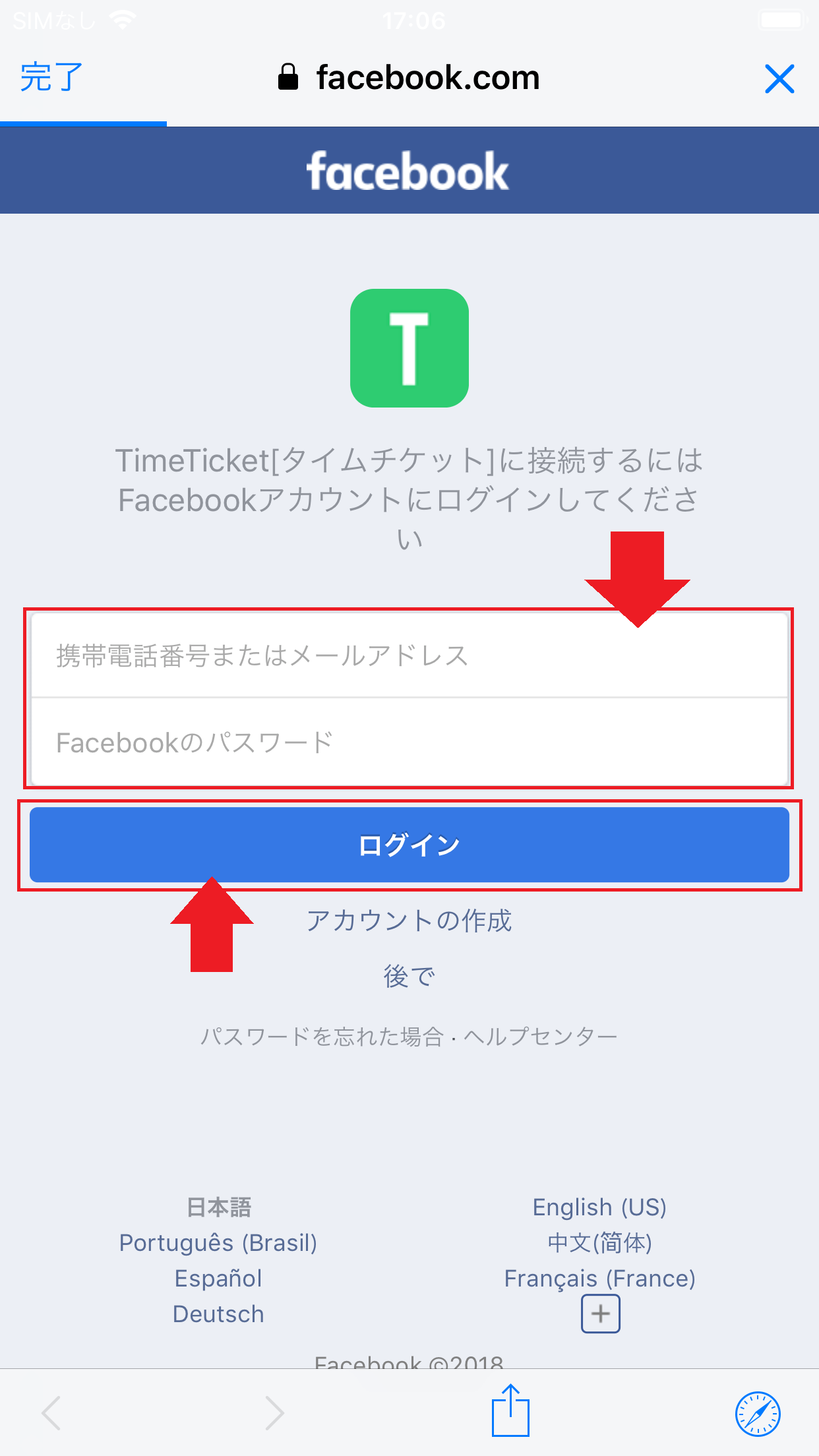 facebookのログインパスワードを入力します。