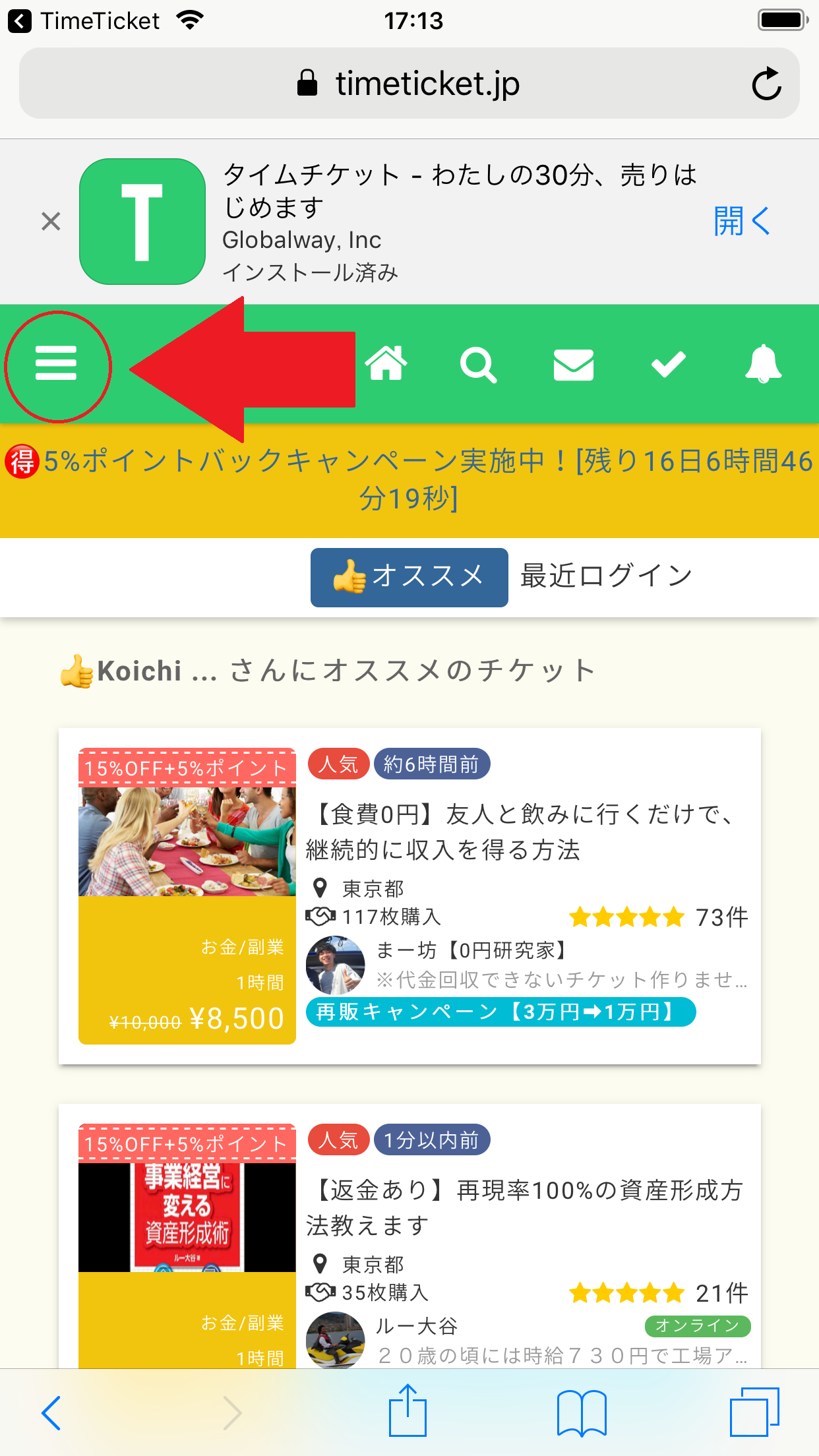 まず、Timeticket(タイムチケット)のアプリを