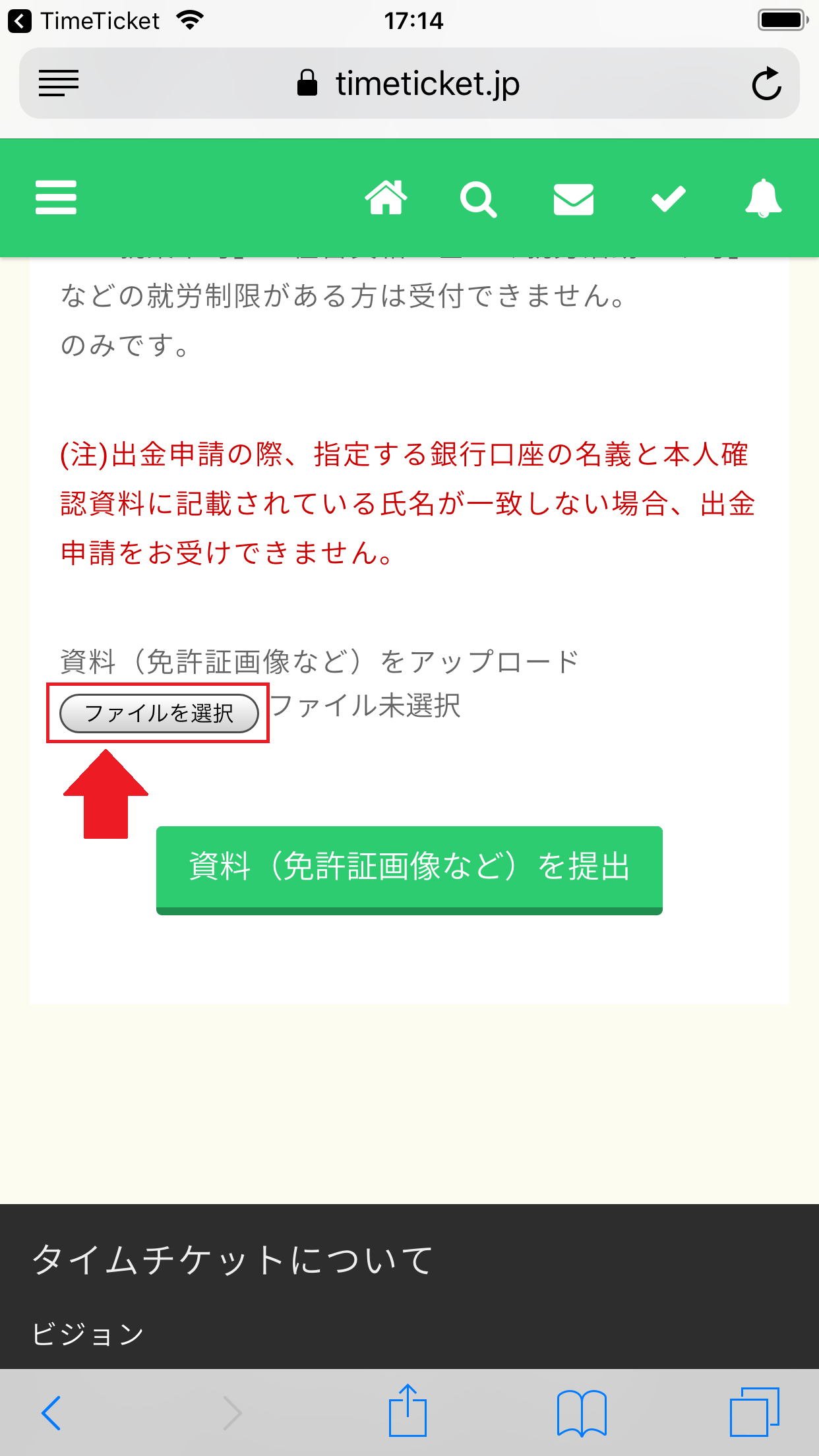 このまま画面の下へ移動していくと、本人確認資料を提出するボタンが出てきますので、