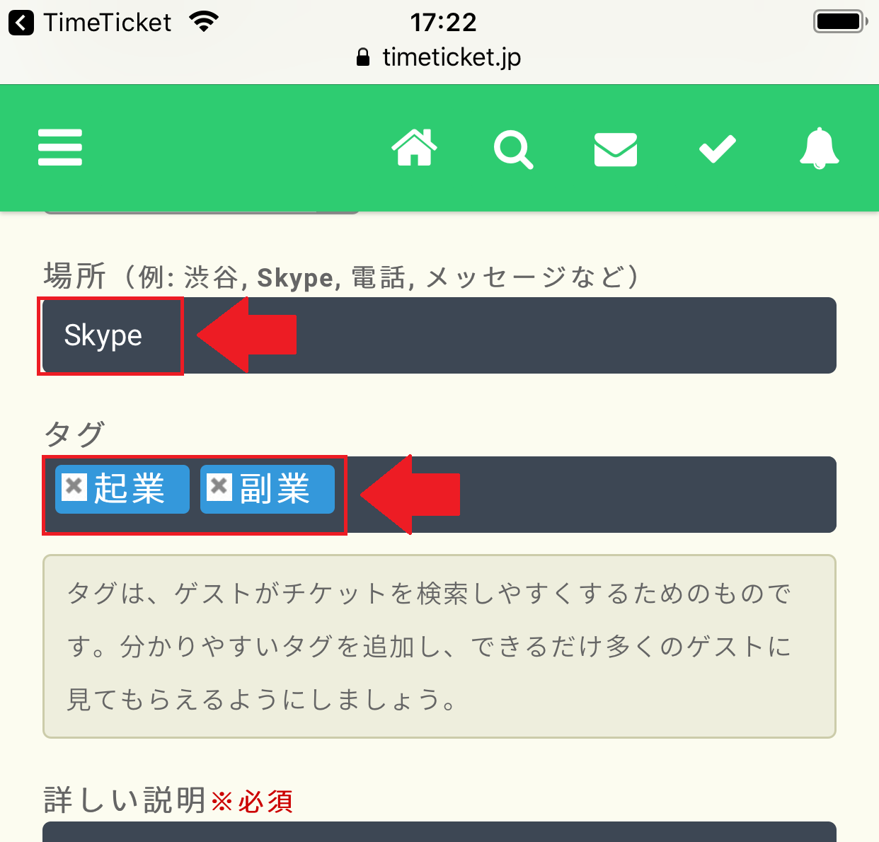 関連するタグを入力することで、あなたのチケットをたくさんの人々に発見してもらいやすくなります。