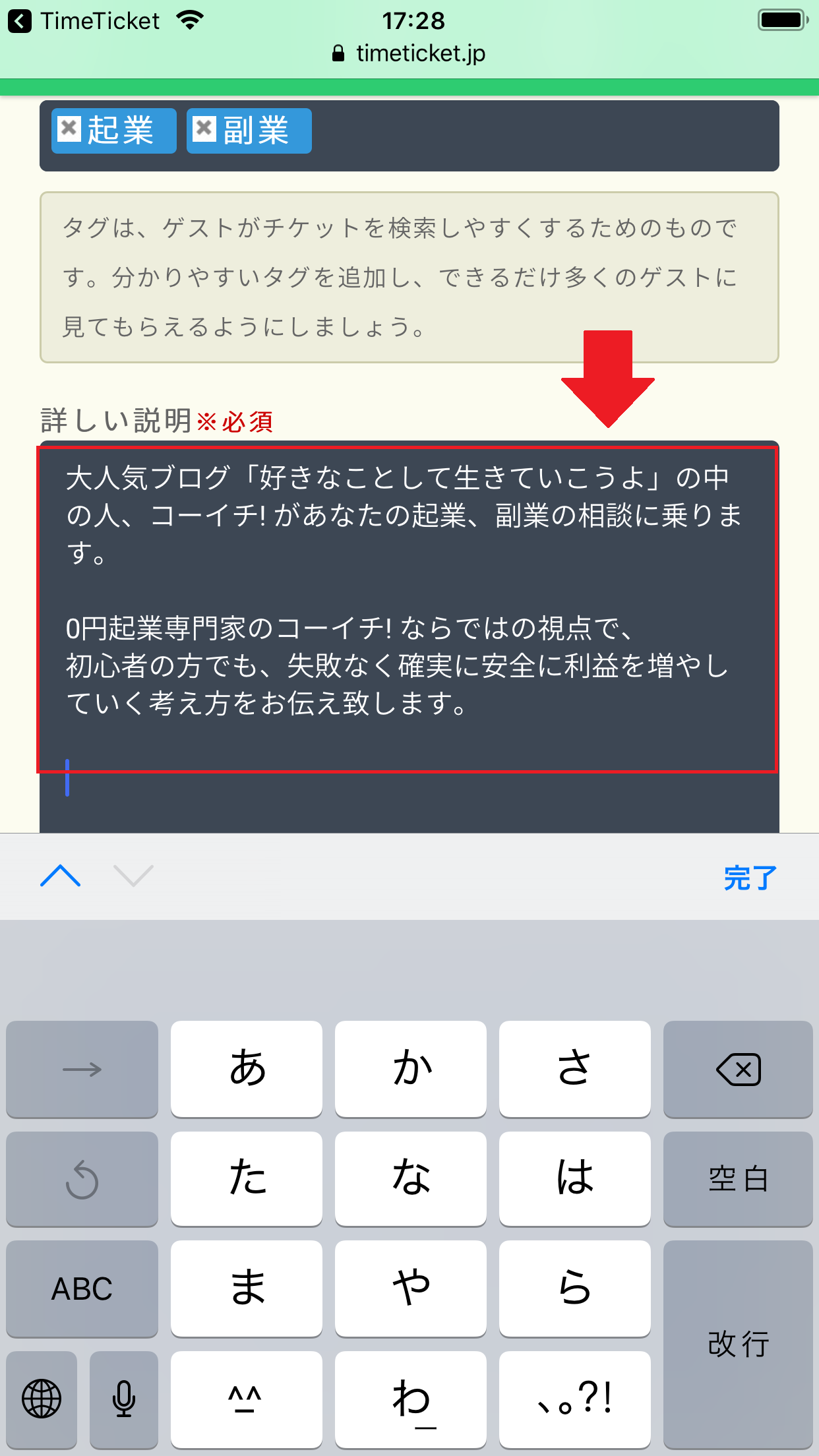次に「詳しい説明欄」にて、あなた自身の自己紹介やあなたの特技、あなたが教えたい人などの詳細な情報を入力します。