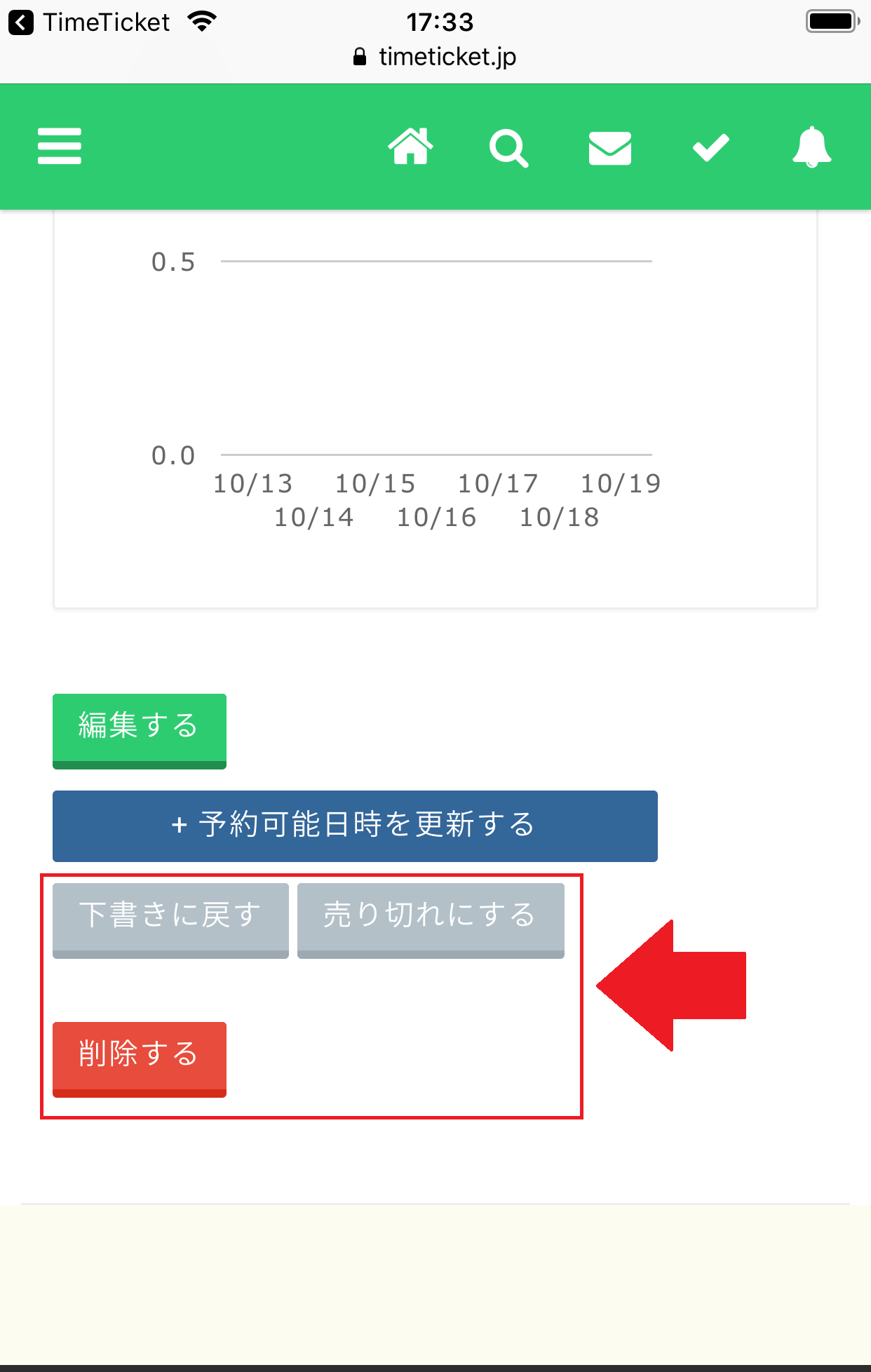 移動したら、「下書きに戻す」「売れ切りにする」「削除する」の3つ選択肢を選べますので、お好きな選択肢を1つ選びます。